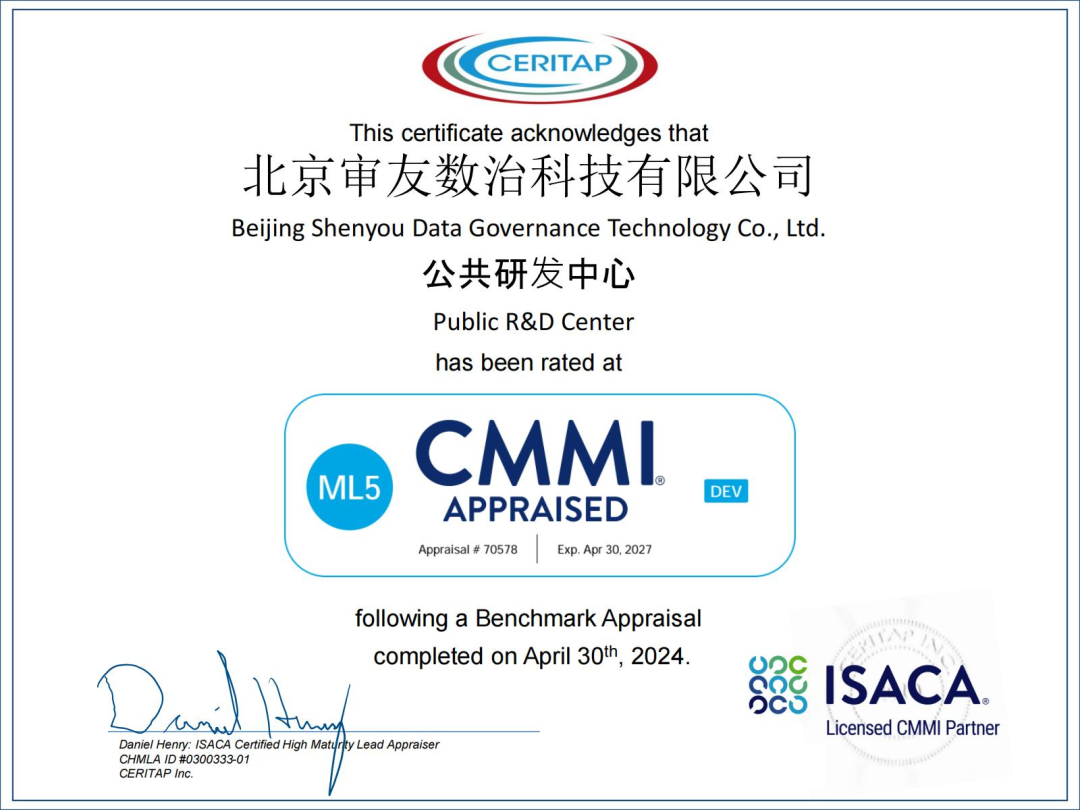 此次我司CMMI-Dev ML5級認證的順利通過,充分彰顯了審友數治的行業領先水平和突出研發能力,標志著審友數治的軟件過程組織、技術研發與項目管理已經達到國際領先標準,具備優秀的軟件成熟度及軟件項目管理能力。